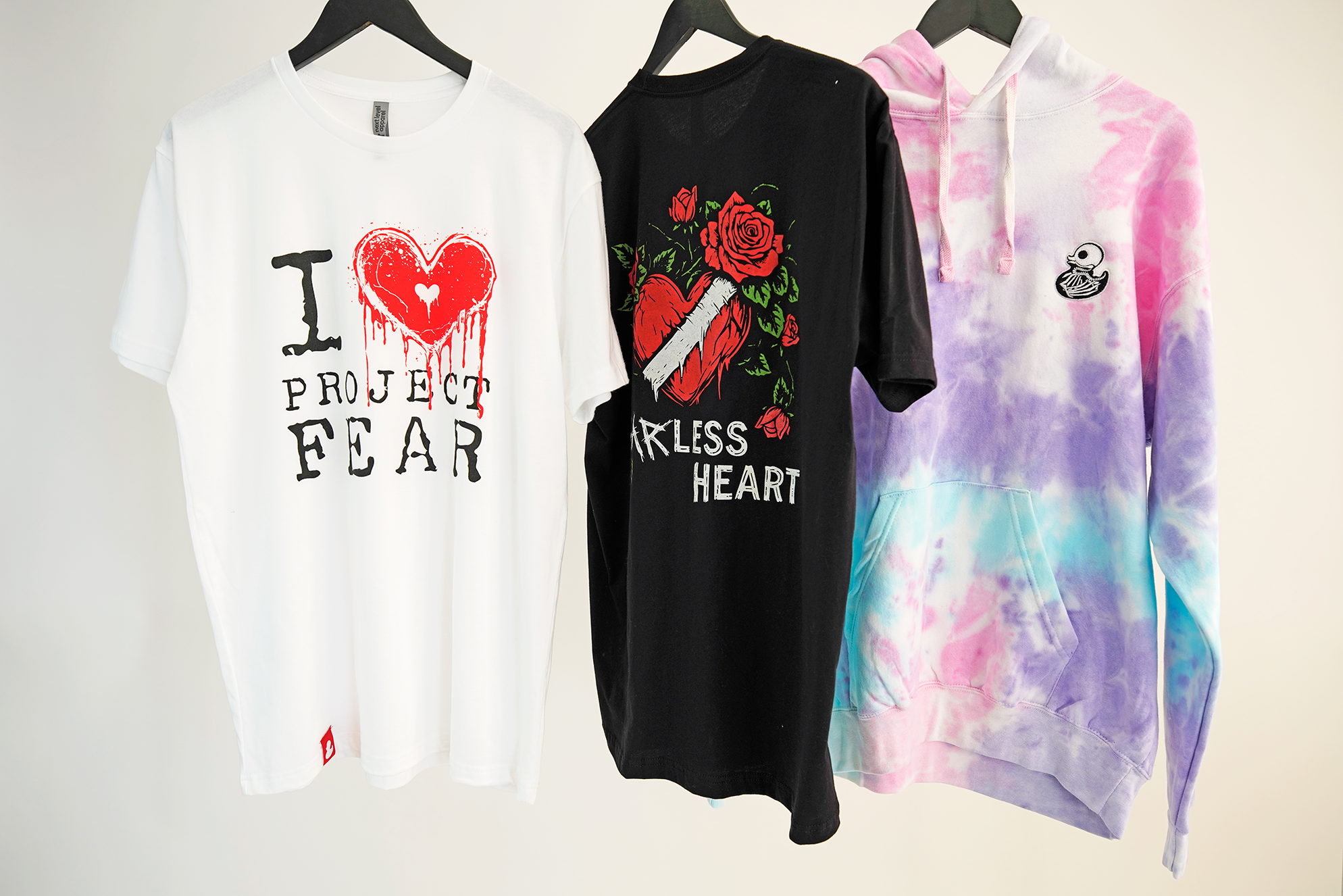 The Duck was first found by Dakota in an old abandoned rubber duck factory in Cleveland, OH. From there the Destination Fear crew have put it in their YouTube videos and episodes of destination fear as an Easter egg for people to try and find! It’s like their calling card and their team mascot! So naturally it became to logo for the Fear Gear brand and got a new spooky x-ray look. Logo design by our friend at Star Cadet, Bailey Galloway.
