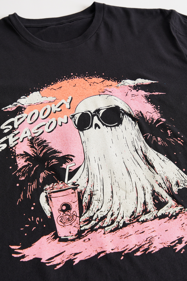 It’s always spooky somewhere. Our Spooky Season tee brings the perfect mix of chill and chills, featuring a too-cool-for-the-other-side ghost catching rays with a cold drink in hand. Whether it’s October or you’re just in a haunting mood, this shirt’s got you covered.