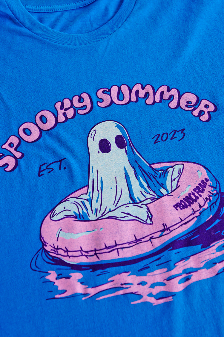 A ghost… in an inner tube? Yeah, summer just got spooky. This turquoise tee features our favorite floaty phantom living its best afterlife. Perfect for poolside hangs, haunted beach days, or any vibe where the sun’s out and the spirits are, too.