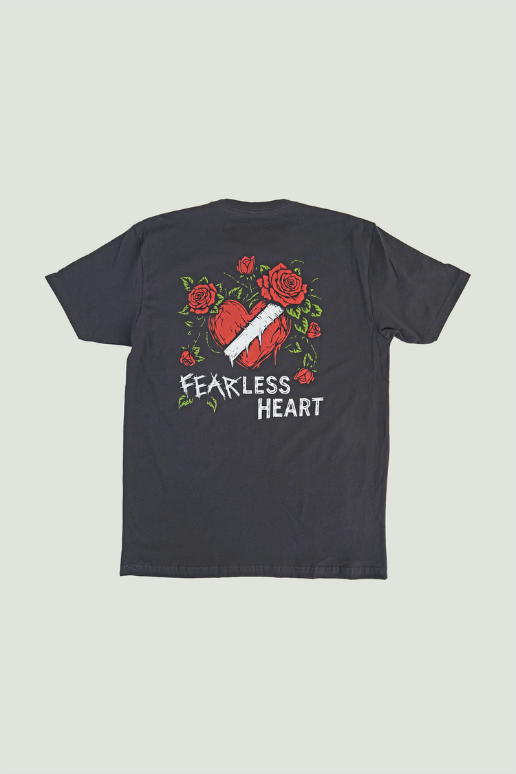 The Fearless Heart Tee is dark romance at its finest—featuring a battered heart wrapped in roses and defiance. It’s a love story that survived the scare, the scars, and whatever’s lurking in the dark.