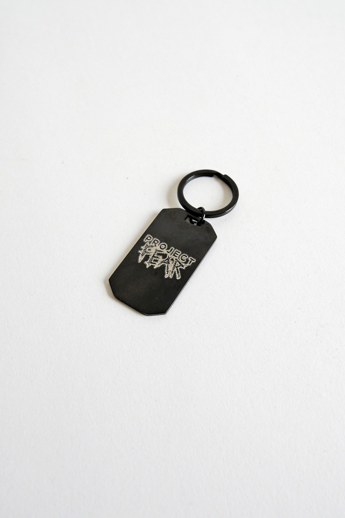 Carry a little fear with you wherever you go. This sleek black metal keychain features engraved designs on both sides—one side with the classic Project Fear logo, the other with a bold collegiate-inspired design.